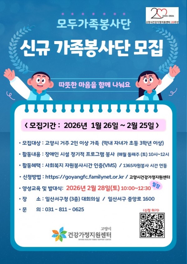 고양시 건강가정지원센터, 가족봉사단 참여자 모집 안내(고양시 새소식)